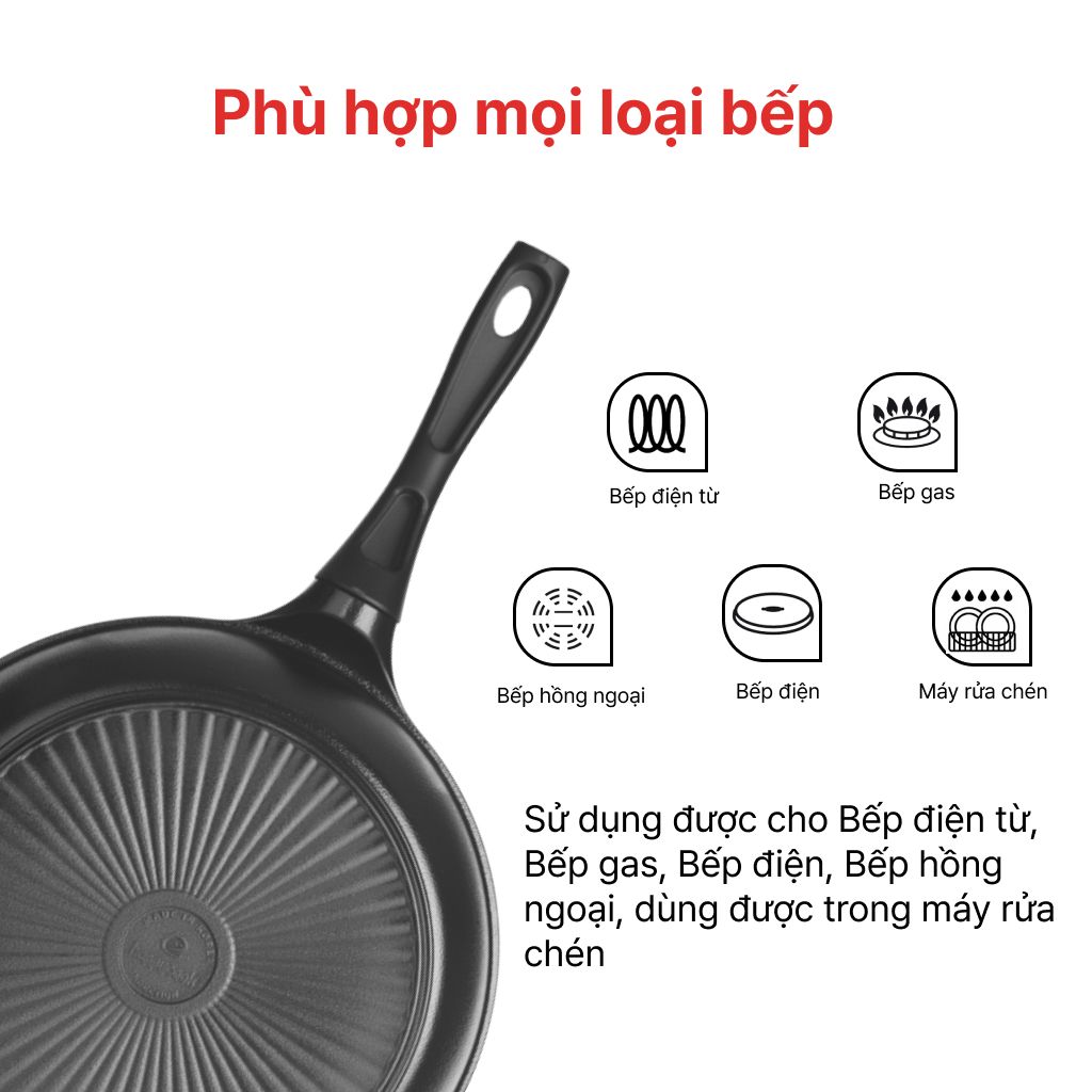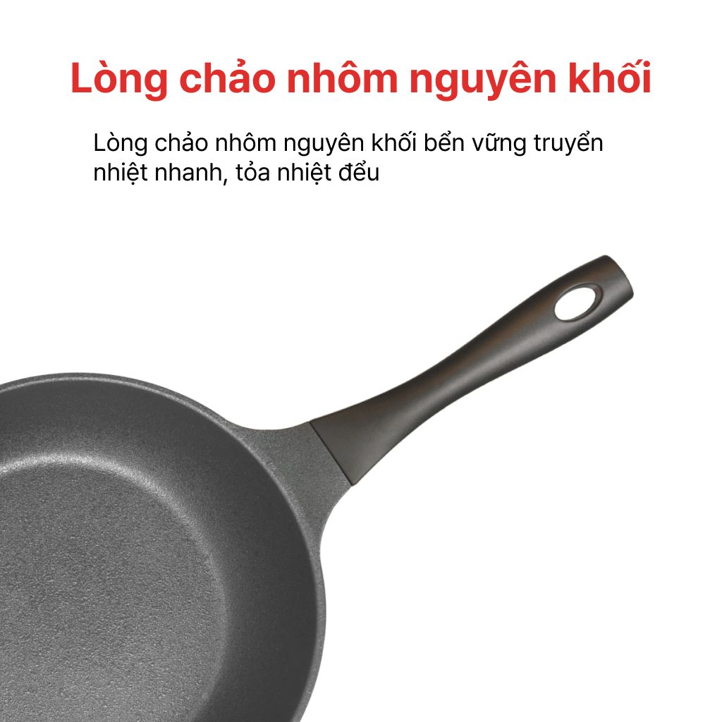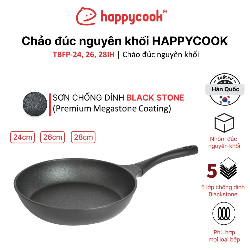Chảo đúc nguyên khối All Black 24, 26, 28cm, HAPPYCOOK, TBFP